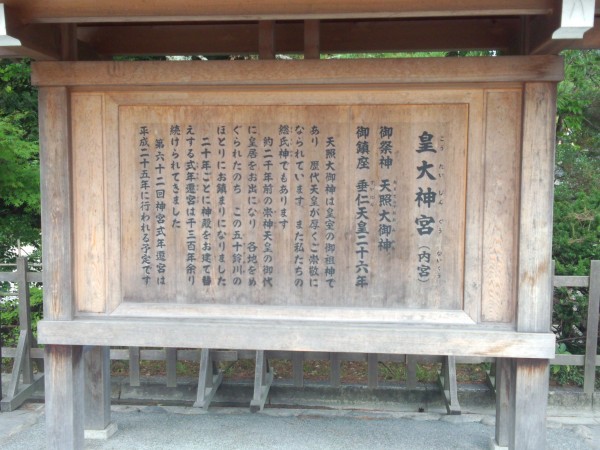 今年は第六十二回式年遷宮の「遷御」の年にあたり、十月には神さまが、新しいお宮へとお遷りになります(※見づらいですが下記の看板の写真参照)。