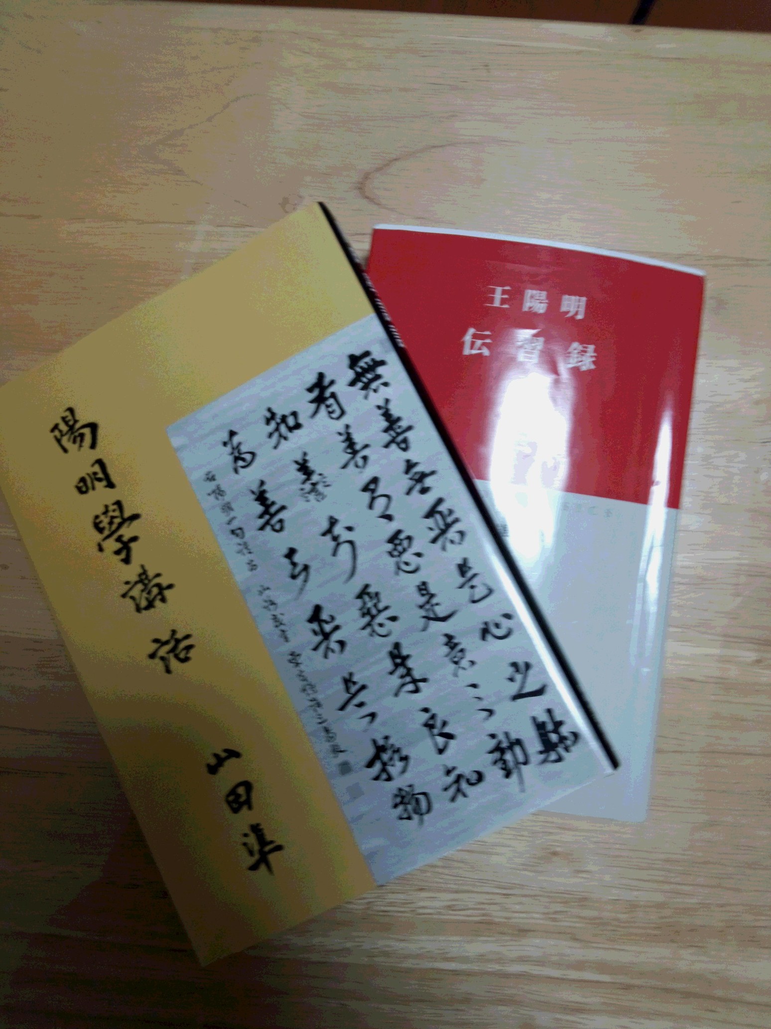 テキスト。上は、陽明学講話 山田準著 下は王陽明 伝習録