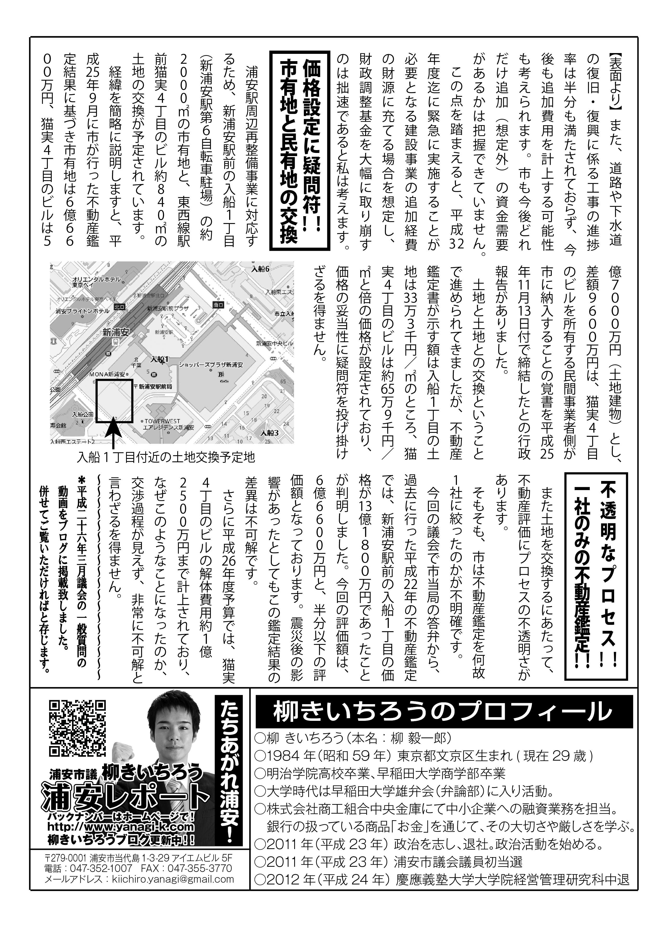 内容が盛り沢山ではございますが、今後の浦安市政にとって非常に重要な問題であると思っておりますので、是非とも多くの皆様にお読みになっていただき、そして多くの皆様にこの問題に対して関心を持っていただけることを切に願っております。